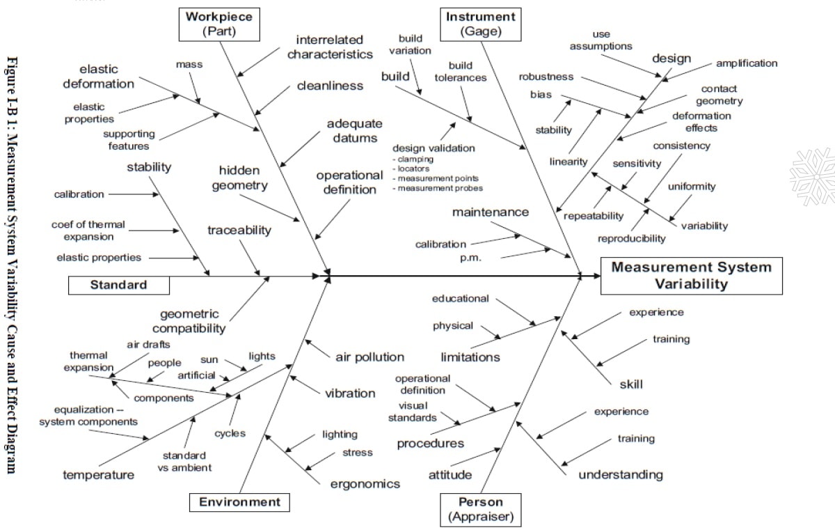 ซึ่งจะส่งผลทันทีต่อการตัดสินใจด้านการวัดและวิเคราะห์ค่าของการตรวจสอบชิ้น งานที่มีความผิดพลาด ทำให้ขาดความเชื่อมั่นจากทางลูกค้าในระยะยาวได้ ดังนั้นระบบการวัดจึงถือเป็นระบบพื้นฐานที่สำคัญและจำเป็นที่จะต้องมีการควบคุม และต้องลดความผันแปรในระบบการวัดซึ่งจำเป็นในช่วงของการทดลองผลิตและการผลิตจริงในเฟสที่ 4และ 5